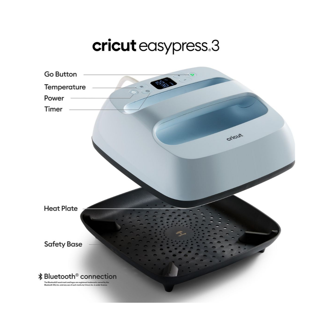 The world’s most beloved heat press is now smarter than ever with built-in Bluetooth wireless technology. Connect Cricut EasyPress 3 to the Cricut Heat app to send precise time & temperature settings and follow step-by-step guidance for any project. A ceramic-coated heat plate offers a super-fast heat-up up to 400â (205°C). Press with peace of mind with an insulated safety base & auto-off feature. Cricut Easypress 3 is portable, easy to store, and compatible with iron-on (HTV), Infusible Ink & sublimation products. An excellent companion to Cricut cutting machines.