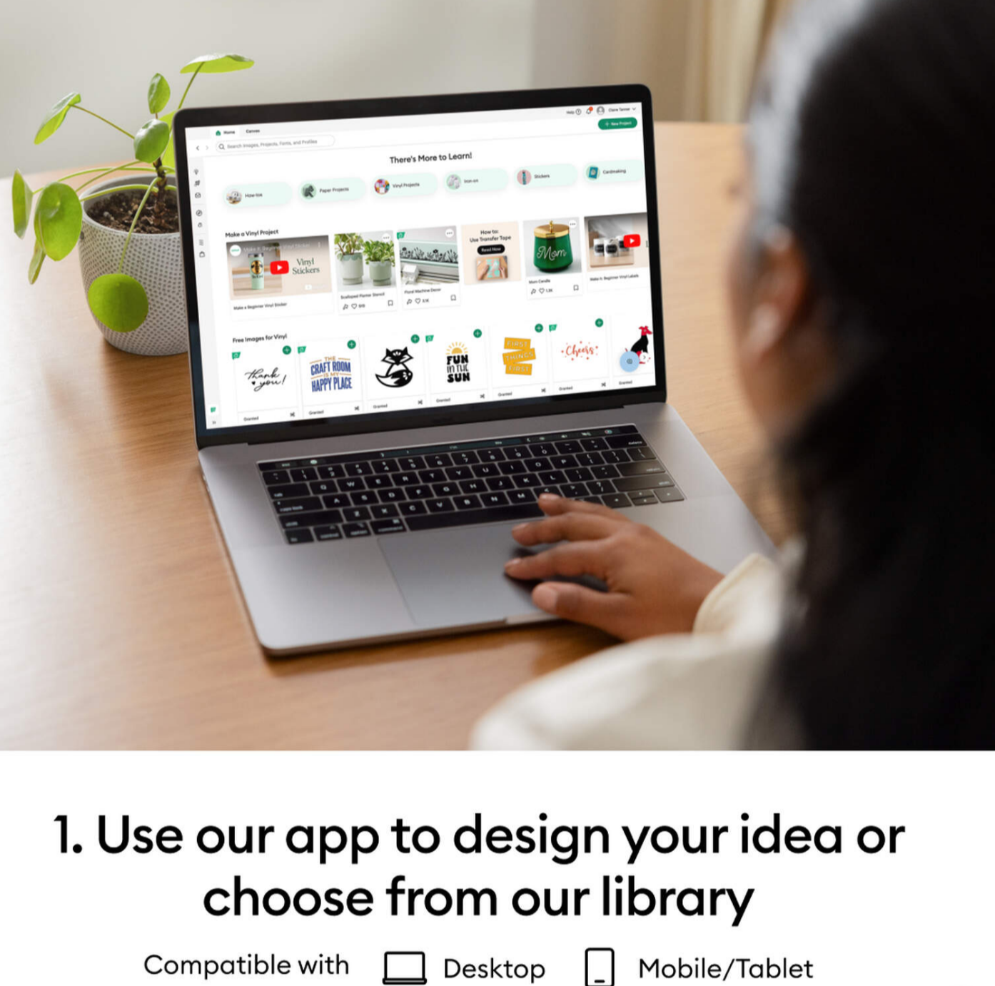 It comes with materials to hit the ground cutting, and easy-to-follow setup instructions online. No design experience required. Works with free Design Space® app.