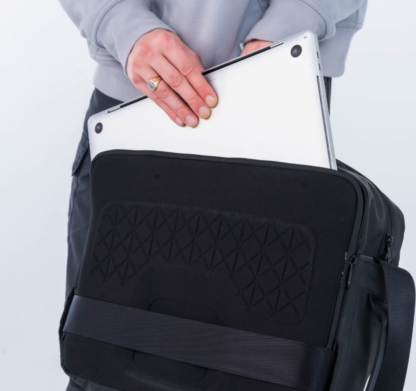 Carry the messenger bag across the body, over the shoulder or as a backpack