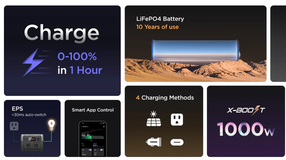 With upgraded long-lasting LFP battery chemistry at its core, charge and empty RIVER 2 Series over 3000 times. That's pretty much 10 years of everyday use1 and 6x longer than the industry average. With LFP cells, RIVER 2 Series is safe, durable, and highly efficient, even in warm temperatures.