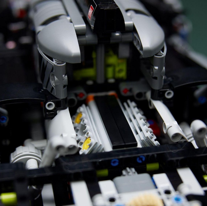 Start your engines – Build the hybrid system including V6 piston engine. Check out the opening doors, steering and suspension on the front and rear designed especially for this model.